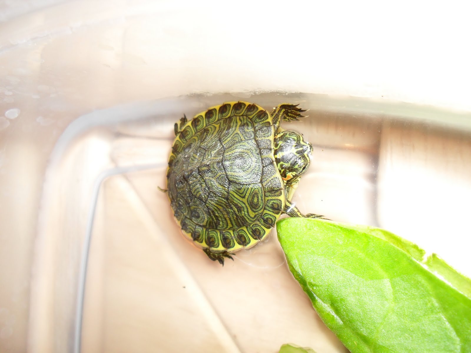 Here in Southeast Georgia, there are lots of crazy creatures that come right up to our house on a pretty regular basis. In the last year we've encountered snakes(even inside!), crab, scorpions, and turtles to name a few. This little one we've named "Tuck", we found right outside our front door last night as Ryan was leaving for a meeting. He's SO small, we just had to take him inside! After doing some online research (don't you just love the internet?!) I think it's (can't tell the gender yet) a yellow-bellied-slider. We're really not sure what to do with this little guy...let him go, or keep him for a pet? I think this turtle will out grow our home, and I have no idea what to do with a large turtle??? Not sure if I'm up for that :)